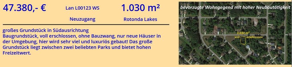Further information on building plots that are also available for purchase can be found at www.einfach-Florida.de